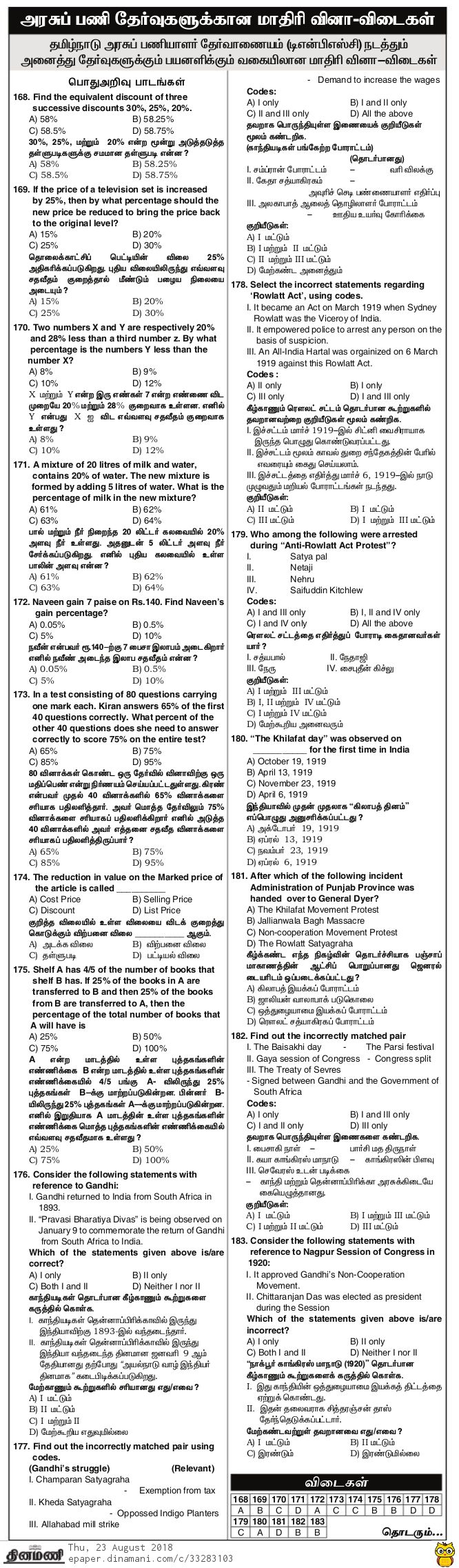 TNPSC Model Question Papers from Dinamani Paper – Day 23