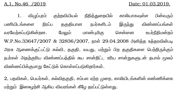 Viluppuram District E-Court Job Notifications