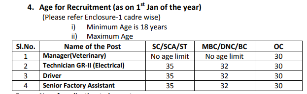 ஒவ்வொரு பிரிவினருக்கும் தனித்தனியான வயது தகுதி பற்றிய முழுமையான விவரங்களை அறிய கீழே இணைக்கப்பட்டுள்ள அதிகாரப்பூர்வ அறிவிப்பை (Refer PDF File Given in Below Link) பார்த்து தெரிந்துகொள்ளவும்.