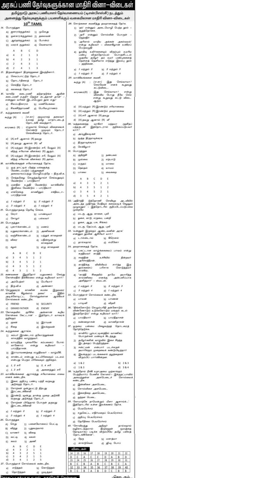 TNPSC TET TN Police – Tamil Questions – 10th