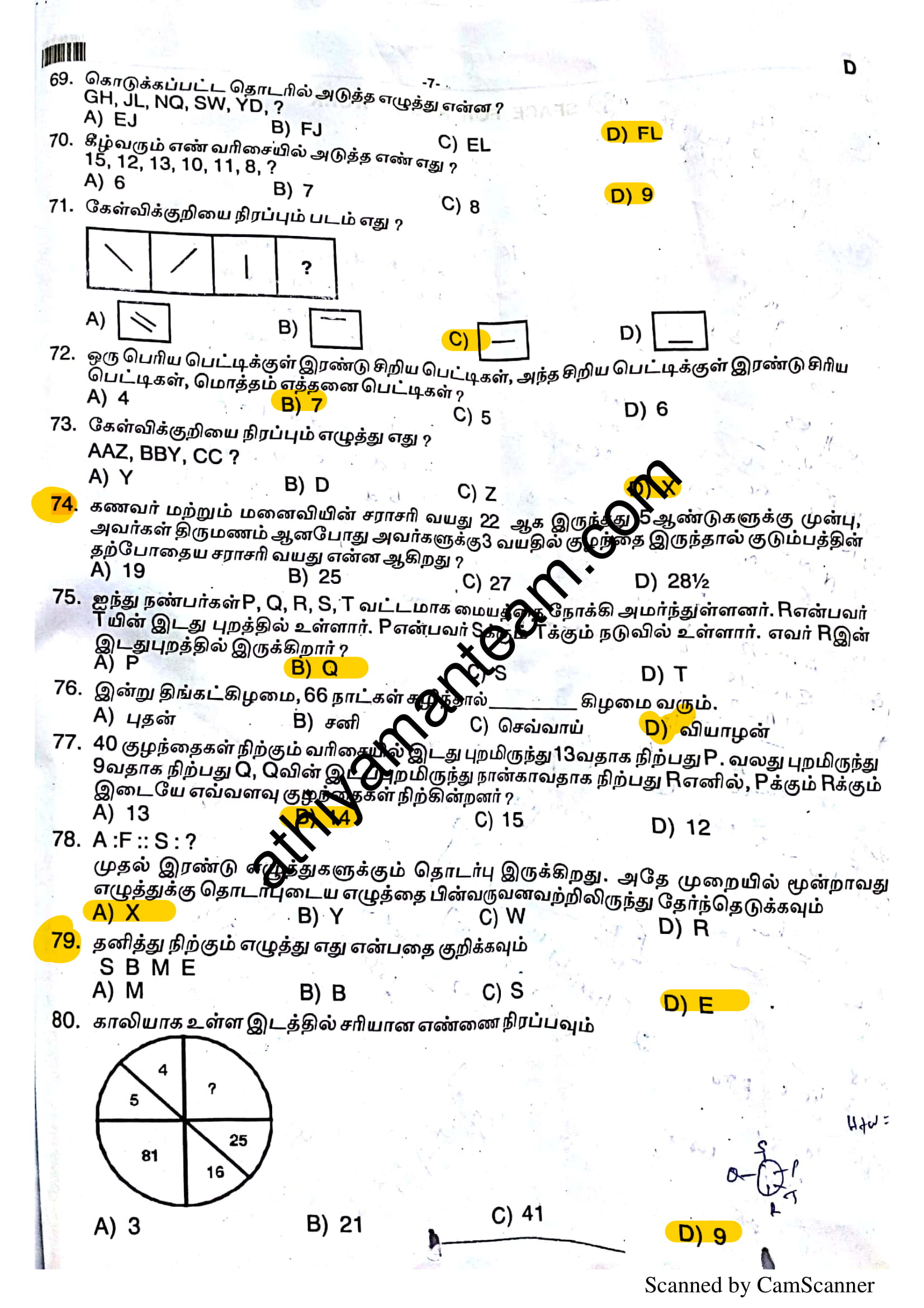 TNUSRB PC Answer Key 2018 – TN Police PC Question Paper